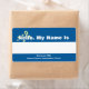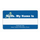 Balises de nom personnalisées avec fleur jaune sur arrière - plan bleu. Bande blanche pour écrire des noms. Modifiez le texte du bas pour afficher le nom de votre groupe et de votre événement.