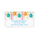 Un étiquette de adresse festif avec du bleu et de l'or et des ballons et des serpentins colorés sur un arrière - plan blanc qui peut être customisé avec des noms, des dates ou d'autres textes.