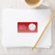 Balle de base-ball de dessin animé rouge et blanc sur un fond dégradé rouge avec une zone de texte personnalisable pour votre nom et votre adresse.