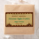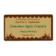 Tangelo foncé arêtes sur le haut et le bas cadre ce étiquette avec bâtons de cannelle et poudre de cannelle en bas à gauche et à droite. Cinq lignes de texte personnalisable dans des couleurs coordonnées de tangelo foncé et de vert bleu.