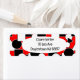 Ces étiquettes d'adresse de retour ont une conception Bauhaus de triangles, cercles, rectangles et pentagons en noir et blanc sur un champ de rouge.