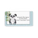 Un étiquette de adresse mignon pour un garçon avec un panda mignon et une biberon avec bambou sur un arrière - plan blanc avec une bordure rayée bleue. Parfait pour les annonces ou les invitations.