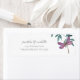 Ce design étiquette de adresse présente une belle libellule d'aquarelle avec des ailes dans les tons violet et rose. Il repose sur un agencement simple de verdure naturelle de jardin aquarelle dans les tons vert et bleu sur un arrière - plan blanc. -