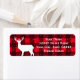 Étiquette de l'adresse de retour de Noël pour les cerfs de buffle rouge. Étiquettes autocollants rustiques pour la saison des Fêtes. Design rustique chic avec silhouette d'un renne dans la neige. Texte personnalisé et couleur arrière - plan derrière le motif bûcheron à damiers. Belle conception hivernale pour la maison ou le bureau.