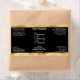 This elegant product label for cosmetic bottles features a black background with faux gold foil borders. This label contains space for your product name, business name, product weight, ingredients, instructions, social media, and business address. This label measures 3.75 inches by 2 inches (95 mm by 51 mm) and is suitable for bottles with a diameter of 1.2 inches (31 mm) or more such as 2 to 4 oz (60 to 120 ml) bullet, cylinder, and boston round bottles. It can also be used for cosmetic jars and other types of cosmetics packaging.