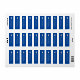 This modern design features a graduation hat and confetti in silver on a background of blue with white text.