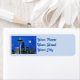 Version couleur bleu de l'horizon célèbre du centre-ville de Seattle, Washington sous une pleine lune.