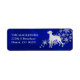 Cette étiquette d'adresse de retour distinctive présente une silhouette argentée Vizsla image de chien devant un spray de flocons de neige argentés ornés. L'image est placée sur un arrière - plan bleu profond dégradé. Votre texte personnalisé est en argent correspondant à gauche de l'image.