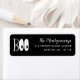 Les étiquettes d'adresse de retour d'Halloween en noir avec BOO en lettres blanches, le o est conçu comme des yeux de dieu. Ajoutez votre nom dans un joli script et votre adresse en lettres blanches modernes.