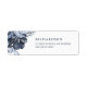 Ces étiquettes d'adresse de retour mariage élégantes et simples présentent des fleurs bleues et des feuilles riches et poussiéreux sur un arrière - plan blanc. Nous avons utilisé l'art via LABFcreations.