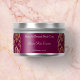 Un étiquette de savon et de cosmétiques avec un motif damassé bordeaux à l'arrière - plan.