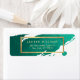 Les coups de pinceau vert émeraude foncé créent une toile de fond abstraite sur ces étiquettes de adresse de créateurs. Votre nom, ou nom commercial, et adresse est affiché dans une fausse boîte dorée pour une esthétique moderne. Art et design © 1201AM Design Studio | www.1201am.com