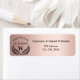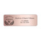 Un mariage enregistrer la date, renvoyer l'étiquette d'adresse. Un arrière - plan rose à l'apparence métallique. Décoré d'une couronne de laurier. Personnalisez et ajoutez votre date mariage, vos noms, votre adresse et votre monogramme familial initial.