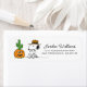 Spike, avec sa moustache noire et son cadre fin, porte un casquette un peu fatigué qui ajoute à son charme d'habitant du désert. Le jack-o-lanterne a un sourire tordu, avec des dents inégales et des yeux en forme de triangle, qui a l'air malicieusement éffrayant. Le cactus se tient haut derrière le citrouille, ajoutant un peu de cette atmosphère désertique à la scène, comme s'il faisait partie de la célébration d'Halloween elle-même.