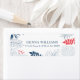 Fleurs tropicales et partez en bleu marine et blanc avec des accents corail-rouge, modèle personnalisable.