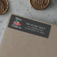 Ces étiquettes d'adresse de retour Joyeux Noël rouge et gris arbre sont parfaites pour une carte de vacances ou une invitation de style moderne mais vintage. Le design comprend une vieille camionnette rouge classique portant un arbre de Noël avec les mots "Joyeux Noël" dans une police moderne en lettres sur un arrière - plan gris foncé.