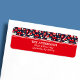 Canada Étiquette de adresse canadien d'orignal d'hiver de Noël. Beau hiver rouge et blanc éléments canadiens contre un arrière - plan bleu marine. Accentué d'orignaux, d'arbres de noël, de drapeau du Canada, de feuilles d'érable et de patins à glace. Parfait pour Noël et les fêtes.