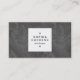 Modèle de carte de visite élégant avec un panneau noir carré de 1,3 po sur le devant. Nom et titre du travail/type d'entreprise dans le panneau avant. Le Nom est créé sur deux lignes en majuscules avec un espace supplémentaire entre chaque lettre donnant un look de marque design de haute qualité. Le panneau carré est également décoré de deux motifs rectangle qui ont été créés à l'aide de l'une des polices de symboles utiles de Zazzle. E-mail, web, adresse et détails de téléphonie joliment arrangés au verso de la carte avec un arrière - plan gris foncé. Cette carte peut également être customisée. Cette version a une image de superposition texturée blanche semi-transparente sur la couleur arrière - plan.