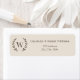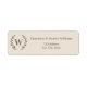 A champagne, beige colored background. Decorated with a wreath. Personalize and add your name, address and family monogram initial. Warm taupe colored text.
