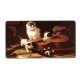 Tableau vintage d'une chatte mère et de ses chatons jouant avec une guitare
