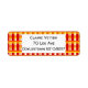 Ces étiquettes d'adresse de retour ont un design Art Déco d'un plaid avec des lignes épaisses et fines en rouge, orange et jaune.