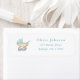 Aquarelle bleue mignonne vintage poussette garçon retour d'adresse étiquettes.