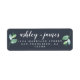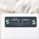 Étiquette d'adresse de retour chic, moderne et simple mariage avec vos noms en calligraphie manuscrite élégante blanche avec une touche élégante de feuillage vert sur un arrière - plan bleu foncé. Ajoutez simplement vos noms et votre adresse. Conçu exclusivement pour vous par Happy Dolphin Studio. Si vous avez besoin d'aide ou de produits correspondants, veuillez nous contacter à happydolphinstudio@outlook.com . Nous sommes heureux de vous aider à faire de votre mariage la plus belle journée!