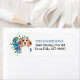 Le côté gauche de ces étiquettes d'adresse de retour présente une belle aquarelle d'un chien Beagle émergeant d'un bouquet de fleurs bleues et violettes. Votre texte personnalisé est en bleu et noir à droite.