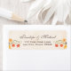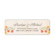 Étiquettes de adresse mariage à thème automne et automne avec une vigne, feuilles de chêne, rose pivoine et design floral sur un arrière - plan de parchemin à l'aspect antique. Orange, corail, vert, marron et jaune. Parfait pour un mariage à thème campagnard chic, d'action de grâces, rustique, de grange ou de ferme ou toute occasion. Oeuvre © Chrissy H. Studios, LLC. Tous droits réservés.