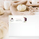 Envoyez cette adresse de retour élégante, automne, fleurie, citrouille blanche. Le citrouille est assis à gauche avec des colorations florales de violet et de rose, y compris une plume verte/blanche pour une ambiance vintage et bohème moderne. Modèles fournis.