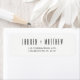 Ces étiquettes d'adresse de retour en noir et blanc élégantes comportent du texte moderne.