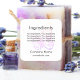 Un arrière - plan blanc, du texte noir. Décoré d'un papillon rose et violet. Personnalisez et ajoutez un titre, les ingrédients de votre produit, le nom commercial et les coordonnées.