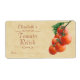 Illustration d'une bande de tomates rouges aux feuilles verts, sur un arrière - plan beige au texte de couleur rustique, réalisée à partir d'une peinture numérique et d'une photo. Le étiquette est aménagé pour la mise en conserve ou l'embouteillage de boulettes, de chutneys, de ketchup et de confitures maison. Vous pouvez laisser l'espace de date pour écrire dans, ou modifier à la date de fabrication de votre produit.
