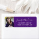 Créez des étiquettes de adresse de remise de diplômes assortis pour une école aux couleurs violettes. Ajoutez une photo d'aîné diplômé à vos envois d'invitation de remise de diplômes 2021. Personnalisez avec leur nom et leur école. Les défilés de remise des diplômes du secondaire et les fêtes de passage seront toujours populaires. Commandez des étiquettes d'adresse de retour personnalisées pour impressionner vos invités et créer une fête de graduation mémorable. Créez des bannières, des affiches, des affiches et d'autres décorations personnalisées pour votre jardin d'aînés. Couleurs violettes de l'école avec votre photo senior.