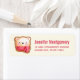 Étiquettes de adresse avec un joli et adorable visage d'ours dressé sur une base de biscuits. Portant un foulard rayé rouge et blanc.
