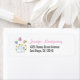 Étiquette Cute Bunnies avec marguerites de printemps et papi