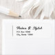Étiquette d'adresse de retour alignée à gauche simple, script commercial et texte coque inférieur clair.