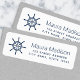 Élégantes étiquettes d'adresse de retour comportant une roue de navire bleu foncé sur un champ d'arrière - plan et de modèle blanc pour votre nom et adresse.