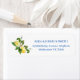 Foliage jaune moderne Lemon Adresse de retour Étiquette Adresse de retour simple à thème citron avec un arrangement citron, feuillage et fleurs blanches et texte bleu.