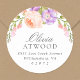 Joli cercle féminin retour d'adresse autocollants personnalisés avec votre nom et adresse bordée par pastel peach rose et lavande violet aquarelle fleurs et verdure. Utilisez les outils de conception pour modifier la couleur et les polices arrière - plans afin de customiser votre propre conception unique.