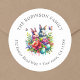 Étiquette d'adresse de retour de Pâques personnalisée de lapin mignon fleur sticker rond.