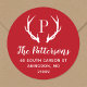 Autocollants d'adresse de retour ronds personnalisés avec votre monogramme et adresse de famille. Ce design rustique moderne vous propose une première monogramme avec des bois de cerfs aux couleurs festives rouge et blanc. Utilisez les outils de conception pour modifier la couleur et les polices arrière - plans afin de customiser votre propre conception unique. Parfait pour s'adresser aux cartes de fin de année, papeterie mariage et plus encore.