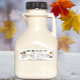 Ce étiquette de sirop d'érable peut être customisé avec votre nom d'entreprise, adresse et volume de sirop d'érable en onces et millilitres. Il y a une liste pratique de tailles communes de conteneurs avec leurs conversions dans le champ de formulaire où vous remplissez vos informations. Arrière - plan blanc avec texte or et bordure. Pour une touche spéciale, le mot "sirop d'érable" a un dégradé doré. Quatre feuilles dorés et orange jaunâtre sont éparpillés sur l'arrière - plan noir comme s'ils tombaient d'une érable à sucre en automne.