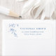 sticker d'adresse de retour minimaliste avec feuilles botaniques illustrés à la main rustique et police classique moderne en bleu et blanc, simple, élégant et professionnel. Voir toutes les pièces correspondantes dans la collection.