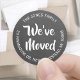 Ajoutez une touche de finition élégante au changement des cartes d'adresse, de nouvelles annonces d'adresse et d'autres correspondances avec ces autocollants circulaires We've Moved / I've Moved. Tout le texte peut être customisé. Le design noir et blanc présente une écriture stylisée de script calligraphie, un arrière - plan de tableau de bord, et un nom et une adresse personnalisés dans un cercle. Ces étiquettes sont une façon moderne et chic de présenter vos amis et votre famille à votre nouvelle maison. Un design minimaliste simple ajoute un style sophistiqué aux invitations à des soirées à chaud, nous avons déplacé / déménagé annonces, cartes de fin de année à des amis et à la famille, mariage, douche nuptiale ou remise de diplômes, notes de remerciement, etc.