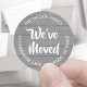 Ajoutez une touche de finition élégante aux enveloppes de faire-part mobiles avec ces étiquettes d'adresses de retour circulaires We've Moved / I've Moved. Tout le texte peut être customisé. Le design moderne de la ferme comprend une élégante calligraphie manuscrite et une simple typographie minimaliste en cercle. Ces enveloppes scellées sont une façon moderne et chic de présenter vos amis et votre famille à votre nouvelle maison. Parfait pour changer de carte d'adresse et les invitations au ménage.