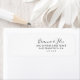 Cette étiquette d'adresse de retour minimaliste simple est parfaite pour un mariage moderne. Le design sobre et élégant présente une typographie de script classique et sophistiquée en noir et blanc.