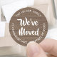 Ajoutez une touche de finition élégante aux enveloppes de faire-part mobiles avec des étiquettes d'adresses de retour circulaires personnalisées We've Moved / I've Moved. Toute la formulation de ce modèle peut être personnalisée. Le design moderne de la ferme comprend une élégante calligraphie manuscrite et une typographie classique simple en cercle. Ces scellés d'enveloppe font un ajout élégant au changement de cartes d'adresse et d'invitations à la maison, lorsque vous présentez des amis et de la famille à votre nouvelle maison,.