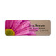 Associez le joli label d'adresse de retour Gerber Daisy rose avec son assortiment d'invitations de mariage, de cartes de voeux ou de timbres de poste pour créer un ensemble de papeterie coordonné. Ces stickers d'adresse à fleurs personnalisées mignonnes comportent une photo florale numériquement peinte de marguerite rose sur un arrière - plan bronzé.