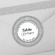 Ajoutez votre courrier avec une touche de scintillement de célébrité en utilisant cette éblouissante étiquette d'adresse de retour ronde. Le design encadre vos informations avec un triple halo de brillants faux diamants, capturant la lumière comme un ciel étoilé. Au centre, votre nom se démarque par une police serif audacieuse et moderne, parfaitement complétée par une écriture gracieuse et manuscrite pour un épanouissement personnalisé. Encercler tout est votre adresse de retour complète, soigneusement présentée dans une police simple et facile à lire.